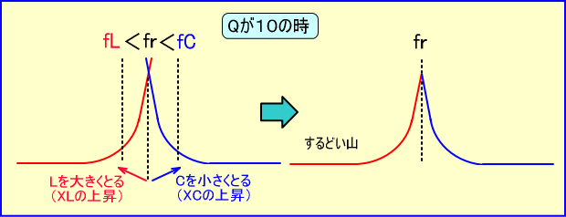 ですからトランジスタでも真空管でも、入力や出力の静電容量が大きいとXCの値を勝手に上げる事ができず、それが共振回路におけるQの限界を決めてしまうことになります。