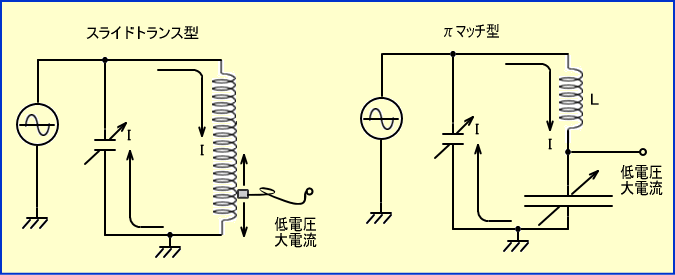 この方式のスゴイ所は出力側のインピーダンスマッチングがバリコンによってスムーズに行える点で、コイルに細かくタップを出すような電磁誘導タイプの複雑構造と同じ働きを、実に安易に、しかも無接点、故に無接触そして無段階で行なえます。