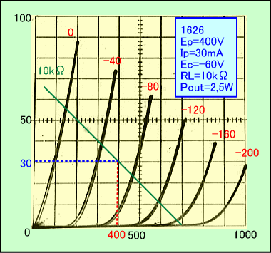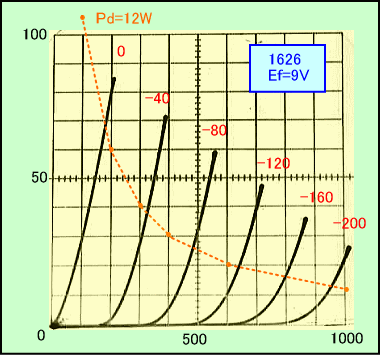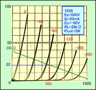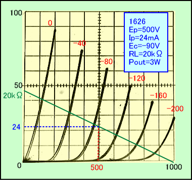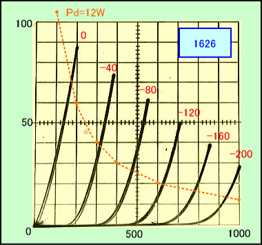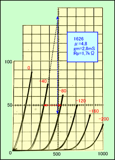 1626 はなかなか素晴らしいカーブを持っている送信管、かつオーディオパワー管であるとわかり、そしてこれにより計測できる3定数は下の図のようになります。