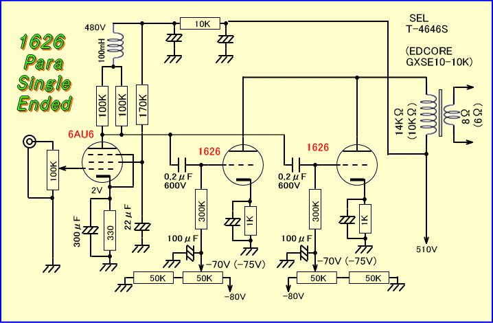 シングル動作を設計する時に面白いと思ったのが、Ep=500Vで負荷28kΩというプランです。そこでSELから出ているT-4646Sの出番のはずでしたが、最近あまりヤフオクで見かけません。
