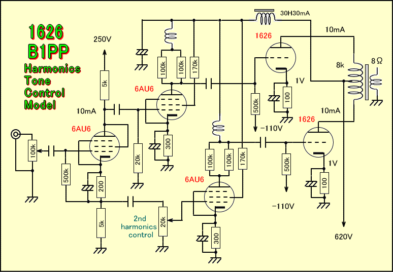 まさに邪道&悪趣味の塊のような回路でありながら、音楽的といわれる2次調波の、音質に対する影響力を実感できる実験回路でもあります。