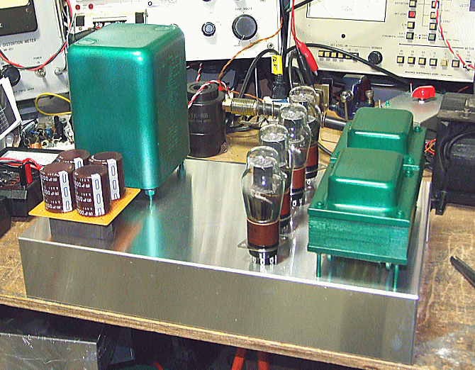 パワートランスはシカゴのかなり大きいもので、シールドケース入りとなっています。そのままでは1次側115V対2次側490Vx2なので、1次側に15V5Aのトランスを直列に加え115Vを作ります。(9月26日入院中に落札)
