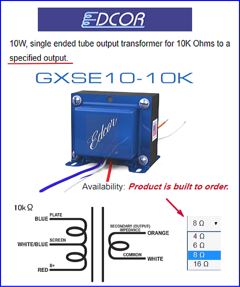 OPTのもう一つの選択肢としては、2本パラレル10kΩ(1球あたり20kΩ)もしくは13,3kΩ(同26,6kΩ)動作として、エドコア社の10Wシングル用GXSE10−10Kという製品があります。
