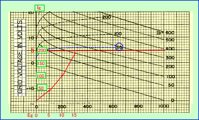 実際にグリッドをわずか+5V まで上げただけで、グリッドにつないだ電流計は50mA近くまで振れ、又この計測結果は規格表とも一致しています。