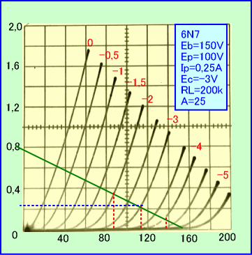 なお、初段の6N7低電流領域と、5725(6AS6)−SLVCCCの特性は下のようになっています。