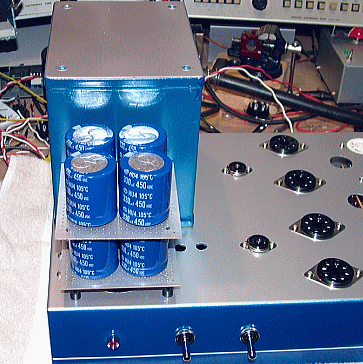 それはともかく、アンプの後方に8ピンのGTソケットを取り付け、ここから外部トランスと結合することにしました。一応デザインも気にして、ブルー系に塗装してみました。