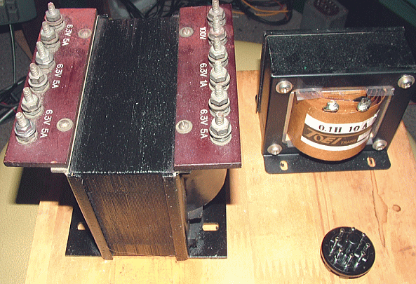 まずは手持ちの中から使えそうなトランスを探すと、6,3V・5Aが4回路ついたものが見つかりました。外付けなのでスペースの制約がなくなり、300B用に大型の0,1H・10Aという東栄トランスのヒーターチョークも取り付けることにしました。