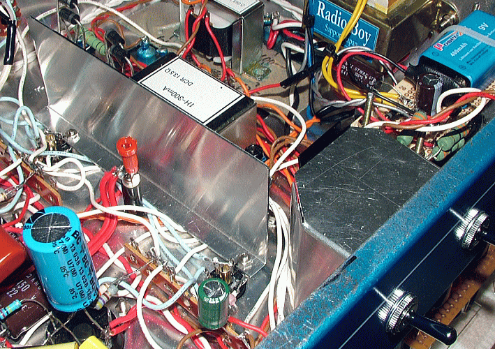 そこでスタンバイスイッチ周りをアルミプレートでシールドしたところ、ノイズレベルがグンと下がりました。さらに中央にもシールド板を配すると、これもかなり効果的でした。