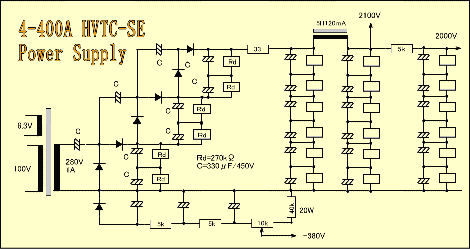 ケミコンは330μF・450Vの6階建てが4列並ぶので、バイアスや倍電圧も含め30個をシャーシ内部に収納する必要があります。