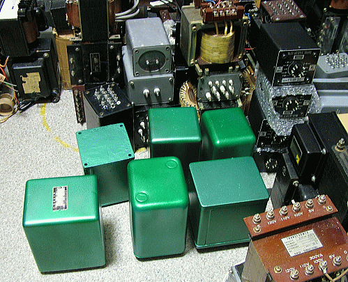 このアンプを製作するに当たり、トランプの神経衰弱の如く、同規格の電源トランス2個を集めようと、ヤフオクで待っていました。しかし一向にそろいませんでしたので、外観と得られるB電圧が近ければ、別物でも良いことにしました。