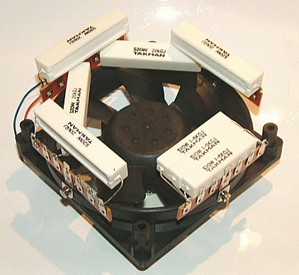 そこでせっかく作ったヒートシンク付き抵抗は使わず、ファンの周囲に6Pラグを3個取り付け、そこに5個の20W20kΩを配置しました。今回はボツ企画が多いようです。