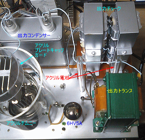 さらにバイアス調整時、プレートチョークは全体が2kVで帯電していることを忘れ、バイアス調整時、出力トランスとプレートチョーク間に手が接触してしまい、又もや手の皮膚に穴が開きました。