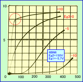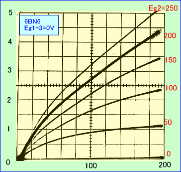 今回の接続方法で6BN6が電圧効率の良い特性を示す理由は、クオードレイチュアグリッド、が通常のG2に似た動作をする一方、アクセラレーターという第3の特殊電極が挿入され、肩特性の非常に優れているポイントを特定の電圧で作り出したためと思われます。
