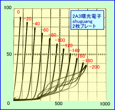 ちなみに同じ曙光電子の2枚プレートタイプの2A3を調べましたが、残念ながら手持ちの2本ともヒステリシス特性が出てしまいましたので、まずはエージングを行ってから再測定します。