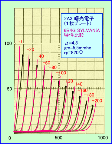 こうしてみると若干内部抵抗の違いはあれ、かなり良く似ている特性から新型6B4Gが6AV5の内部3結球であることはほぼ間違いないと推測できます。