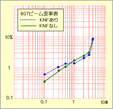 最大出力3Wあたりで3パーセントの歪率と、ビーム管の無帰還シングルとしてはなかなかのリニアリティです。KNF(カソード負帰還)をかけると、1W以上で若干カイゼンされますが、1W以下ではかえって歪が増えています。