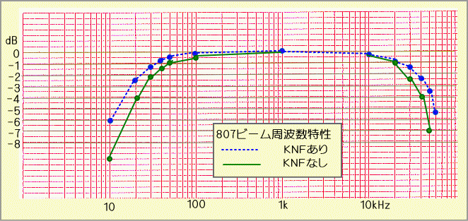 周波数特性は、3デシベル降下点が低域で25Hz、高域で35kHzと、思っていたよりワイドレンジでした。これはOPTの性能に負うところが大きいようで、KNFでさらに向上します。