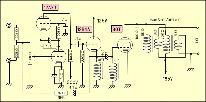 そこでドライバーから初段のグリッドにNFBをかけて、ドライバーの出力インピーダンスを下げましたが、やはり歪のカイゼンには限界があり、A