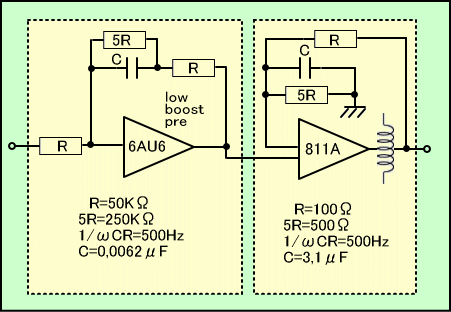 もちろんそれでは低域だけゲインの少ないアンプになってしまいますから、前置アンプを設け、そこで低音を増強する、または全体のゲインを高めに構成し、入り口にイコライザーを入れると言うナイスなプランが登場しました。