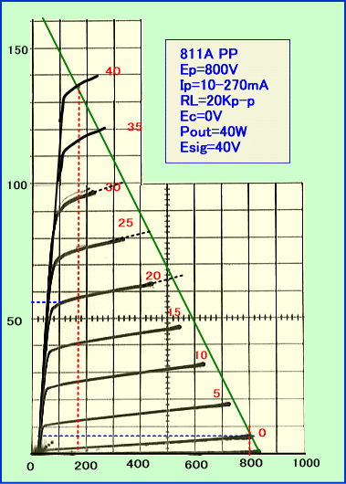 それはさておき今回は方向を変えて、というよりこの球本来の用途どおり、B級PPを設計することにしました。というのも特性カーブから811AのようなB級専用球のほうが、PPでは理想的動作をしそうなカーブを持っているからです。