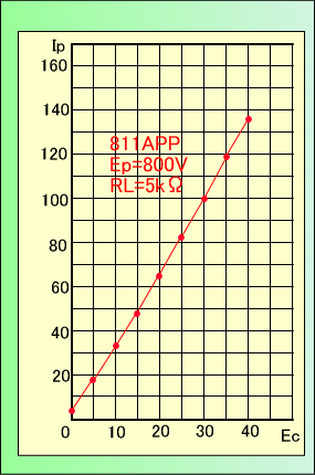 実際この球の特性カーブにはシビレますし、これを基にした高RLのEc-Ip特性からは、どうぞこのエリアでA2級シングルアンプをお作りください、という声が聞こえて来るようです。
