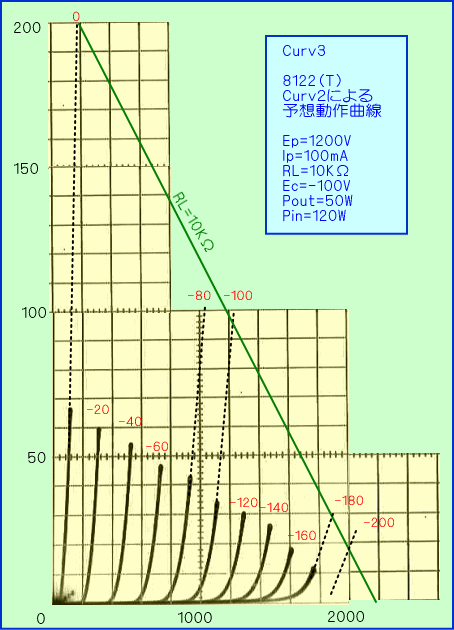 このように無帰還シングルで50W、DF=8,8というアンプが予測できます。やはりX管は内部抵抗が低いですね。ただし、しつこいようですが下半身冷却には充分な配慮が必要です。