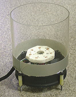 つまりソケットはファンモーターを支えている支柱でのみ支えられている訳ですが、真空管抜き差しの際に受ける力には、接着面共々充分耐えられるようです。
