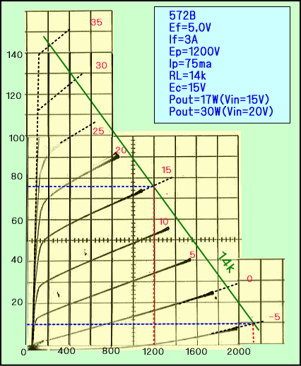 ついでに572BによるEf=5Vの動作例を載せておきました。実は572Bでは6,3Vでも5Vでも全く差が出なかったのです。