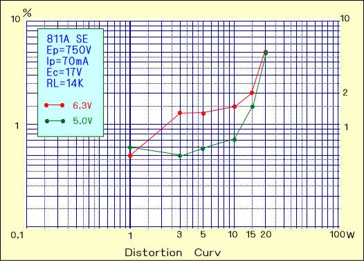 このことから、6,3V-4Aという定格はプレート電流300mA以上の本格的リニアアンプ領域において、有効である一方、オーディオ領域では5Vで充分なのでしょう。