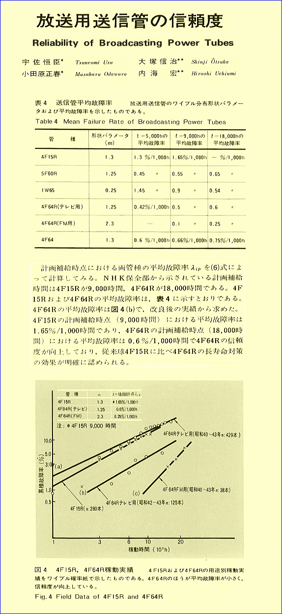また文献によると、送信管でも正常に設計された機器で使用すれば10000時間,、場合によっては20000時間程度、寿命を保てるようです。