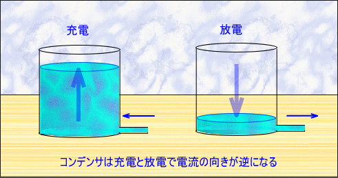 これはタンクに水を貯める時、及び放出する時の、水の流れる方向とよく似ています。