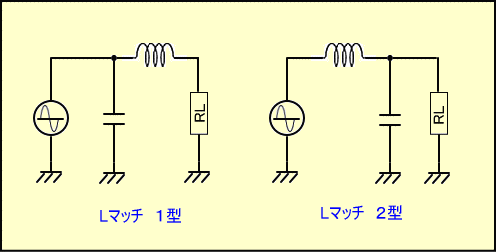 まず下の図のように、Lマッチ回路の2つのタイプをそれぞれ 1型、2型 とします。1型は