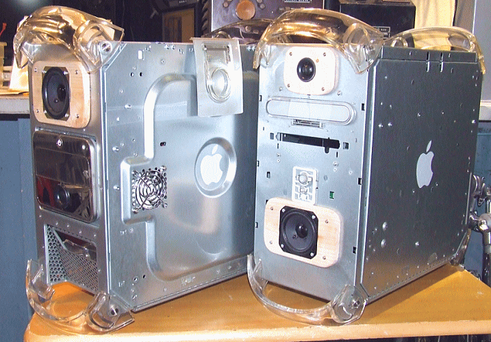 ご覧のようにクイックシルバーとMDDはPCIスロットなどの位置が異なるため、全く違ったスピーカーレイアウトになります。またクイックシルバー本来の吸気口である穴あき部分は排気口とし、その右側に直径12cmの穴をあけ、吸気ファンを取り付けることにより、シャーシ内部をクールに保ちます。