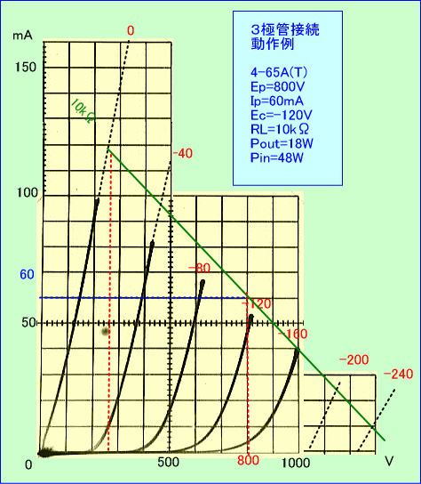 それはさて置き4-65Aで最も重要なのは、この球が内部抵抗1kΩちょっとの、極めてリニアリティーの優れている3極管になれるという点です。