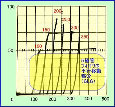 黄色い部分はいわゆる超3極管特性であると分かる。