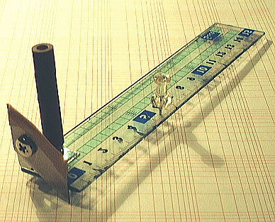 次は分割振動を抑えて低下した中高域を持ち上げるため、ダブルコーン化を行います。そこで紙から円を切り出すサークルカッターを、物差しとカッターの刃で作りました。