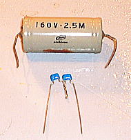 ほぼ実物大ですが、上が元々付いていたオリジナル、下が積層セラミック。あまりに小さいし、1個20円で2個シリーズで使っても40円と安い。