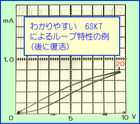 そこであわてて中古の6SK7などの球を計測してみた所、もっとひどいループ状の特性が次々と出てきました。