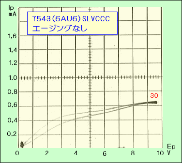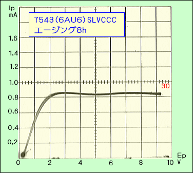 そこで、これはメーカーによるエージングの違いではないかと予測し、同じ7543を8時間ほどエージングしてみました。具体的にはヒータのみ点灯させていただけですが、その結果が下の写真です。