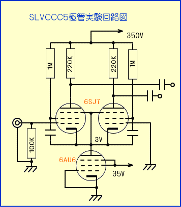 このように3極管差動回路による実験を行いましたが、アンプの初段としてはゲインが低すぎるため、5極管による回路を構成することにしました。