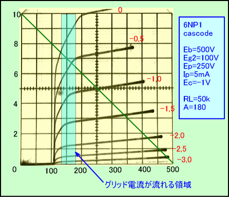 つまり傾斜の部分は下側の球の要求どおり電流を流そうと、必死に頑張っている姿の現れなのです。ですからここではグリッド電流を流してでも内部抵抗を下げているはずです。