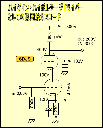 また今回の計測で、カスコードのg2と5極管のg2では全く別の動作であるとわかりました。つまりカスコードにおいてg2電流は流せないのです。