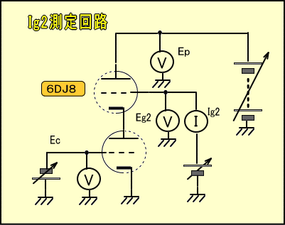 しかも、どうせこんな特性は誰も知らず、誰にも活用されないでしょうから、私ごときが勝手に命名したところで何の影響もないのです。それはさておき、グリッド電流を下の図の状態で計測してみましょう。