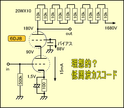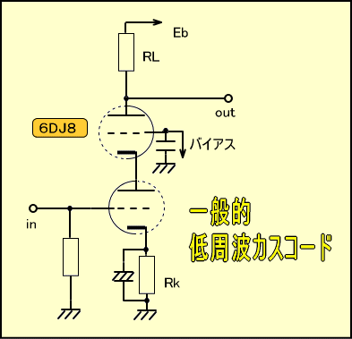 あえてカスコード接続を日本語で言えば「電流変化機能連鎖型・2階建て増幅方式」となるのではないでしょうか。だからこそカスコード接続にはハイμの12AX7などではなく、ハイgmの6DJ8が使われるのです。