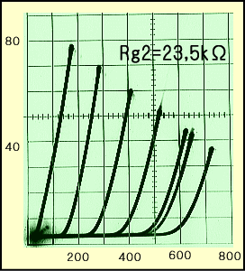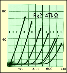 しかしまだ手動でモタモタ通電させていたころ、G1が0Vになる付近の5極管特性を撮影しようとすると、G2が電熱器のニクロム線のように、みるみる赤くなる現象が度々確認されました。