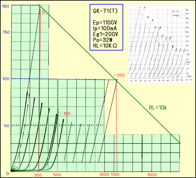 そこで今回はメーカーの最大定格400Vを無視して、GK71による、プレート電圧(=G2電圧)1200Vの3結アンプを作り、その仮説について実証実験を行います。もちろん球の損壊も覚悟の上です。