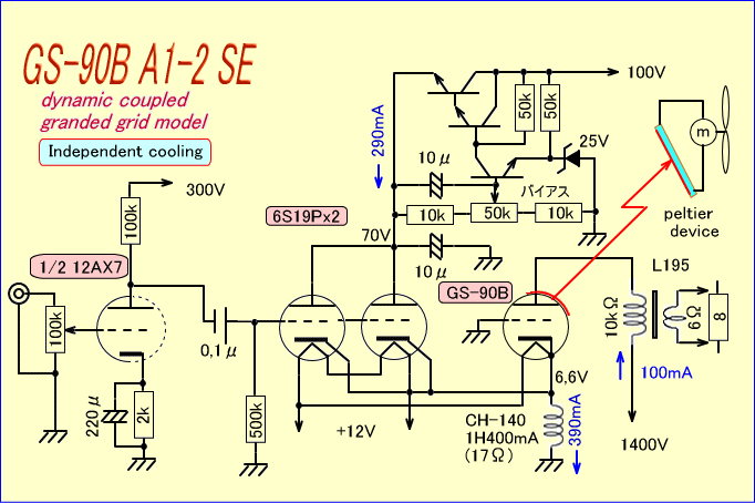 PEP=165W、つまり1500V、110mAの動作でも120℃以下に収まり、これはGS-90Bの自主空冷史上、世界最高記録でしょう。もっとも、私の中ではこれでも充分自然空冷なのですが・・・・。