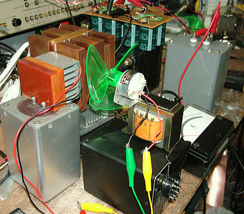 今回プレート入力(PEP)=1400Vx100mA=140Wで実験した結果、実際の発電状況では下のグラフのように、約5分後に回り始め、その後徐々に速度を増し0,85Vで安定しました。