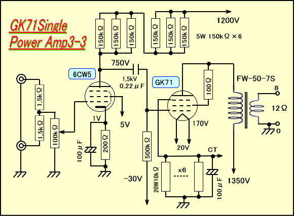 この球はもともと垂直出力管ですが「比較的低い電圧でも十分な出力が出るオーディオ球」というのが売りで、高RLのOTL・SEPPアンプのサンプルデータがあります。