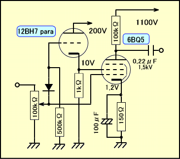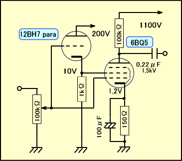 確かにG2電圧変化に対する電流変動は大きく、うまく使えば有効な手段となりそうです。そこで下の図のような、G2を同時にカソードフォロワでドライブする回路を考えてみました。